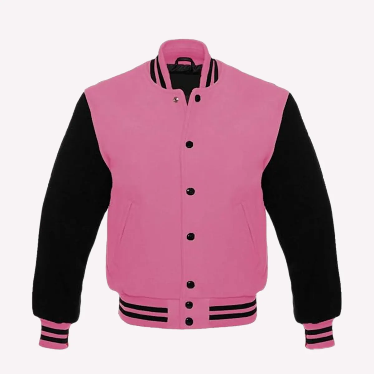 Baby Pink Wool Body & Black Wool Sleeves Letterman Varsity Jacket