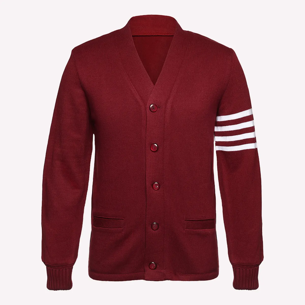 Cardinal With White Stripes Varsity Sweater