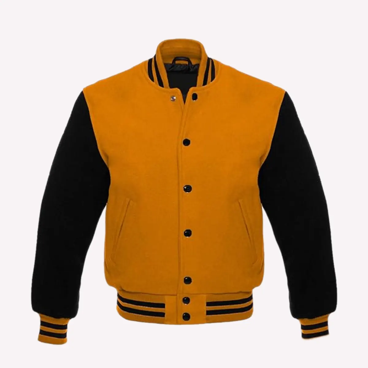 Gold Wool Body & Black Wool Sleeves Letterman Varsity Jacket