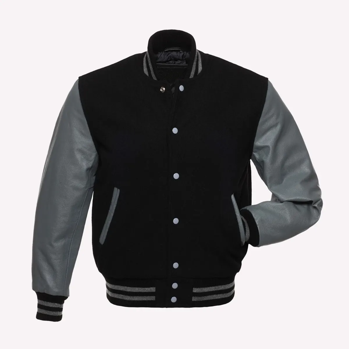 Black Wool Body & Grey Leather Sleeves Letterman Varsity Jacket