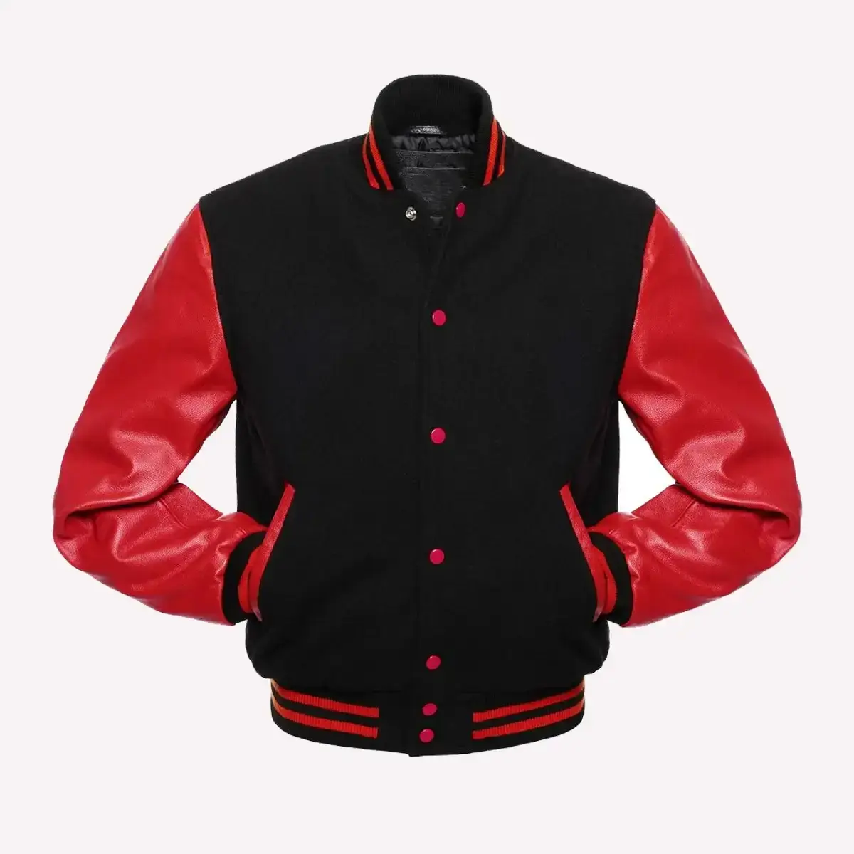 Black Wool Body & Red Leather Sleeves Letterman Varsity Jacket