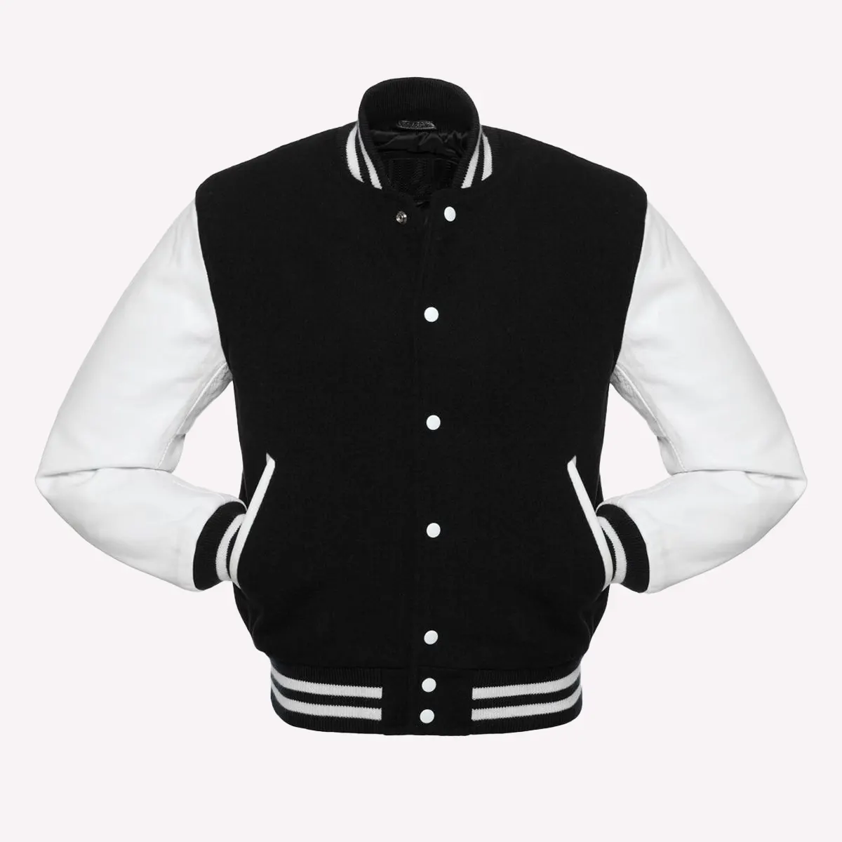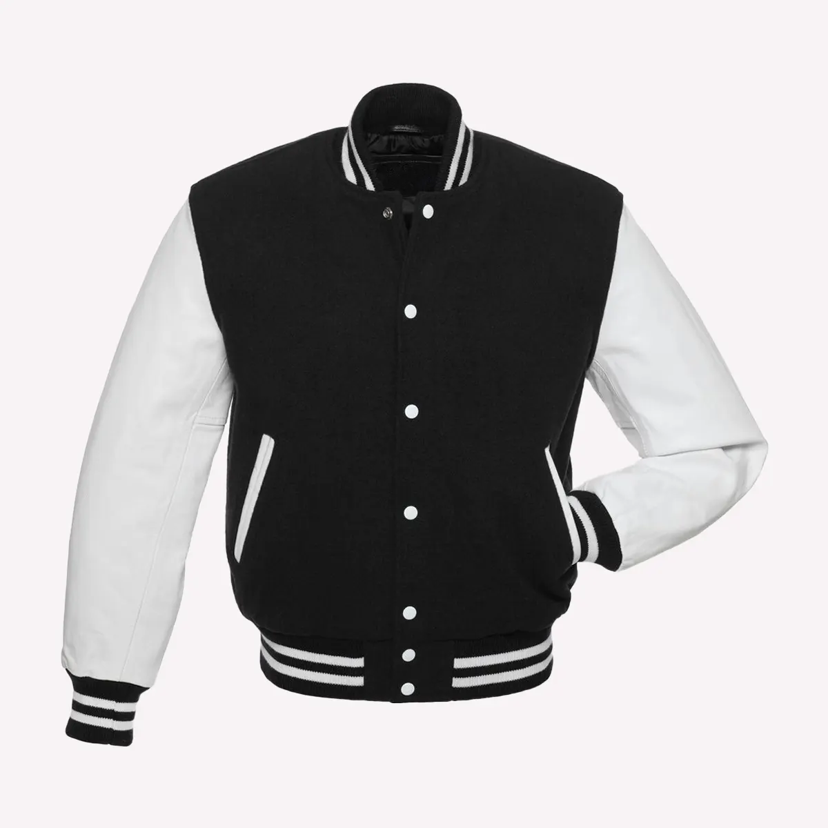 Black Wool Body & Bright White Leather Sleeves Varsity Letterman Jacket