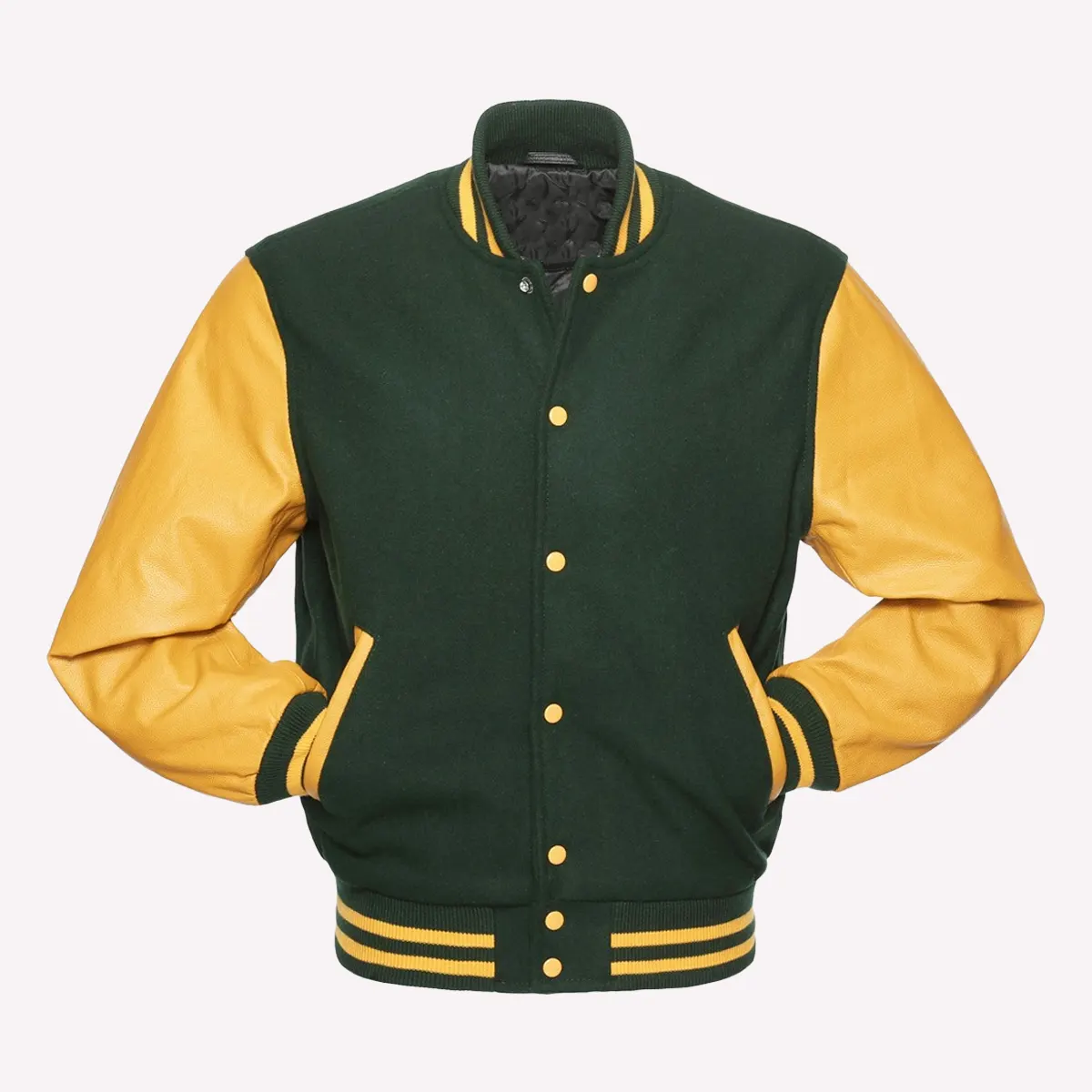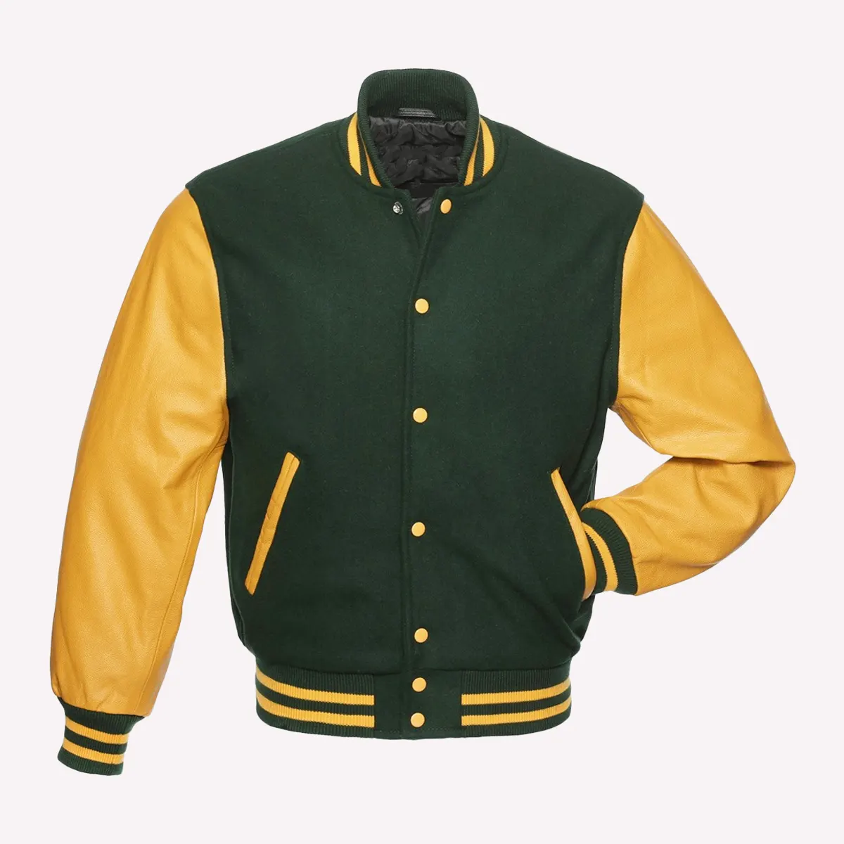 Green Wool Body & Bright Gold Sleeves Letterman Varsity Jacket