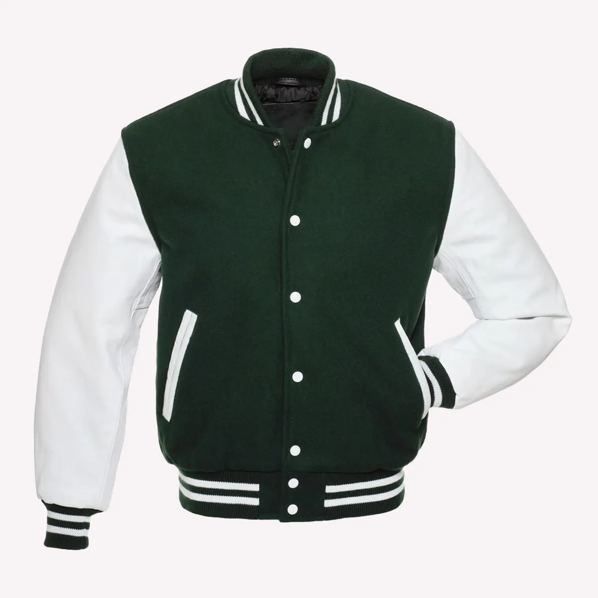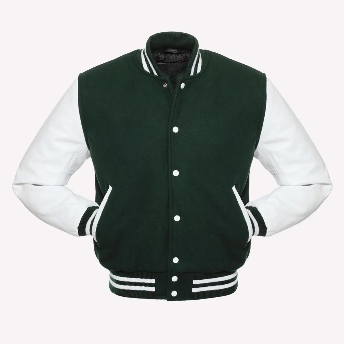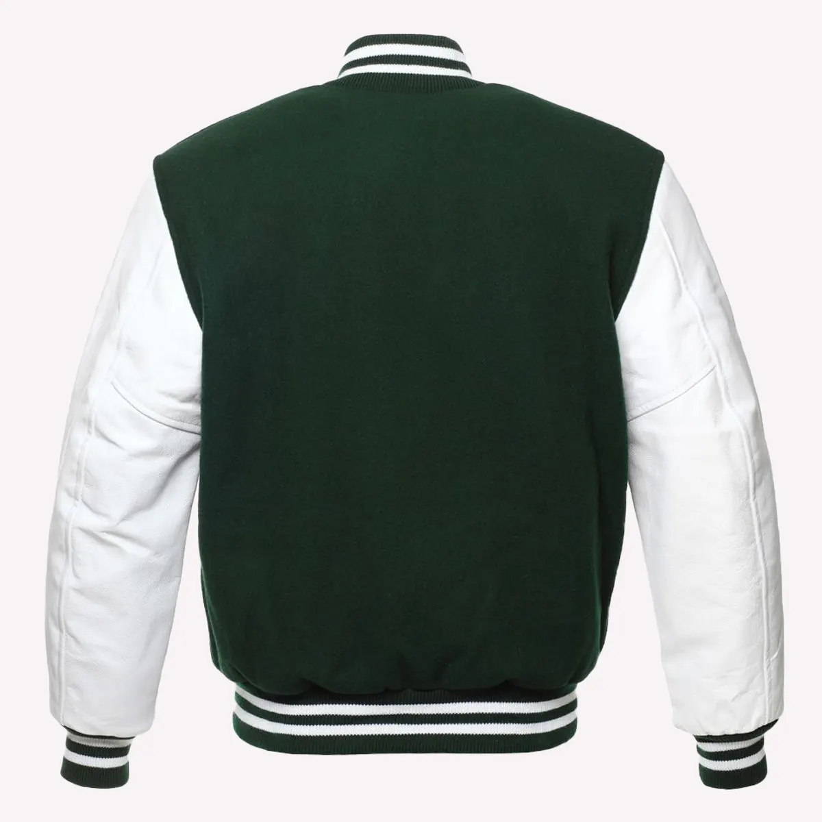 Green Wool Body & Bright White Sleeves Letterman Varsity Jacket