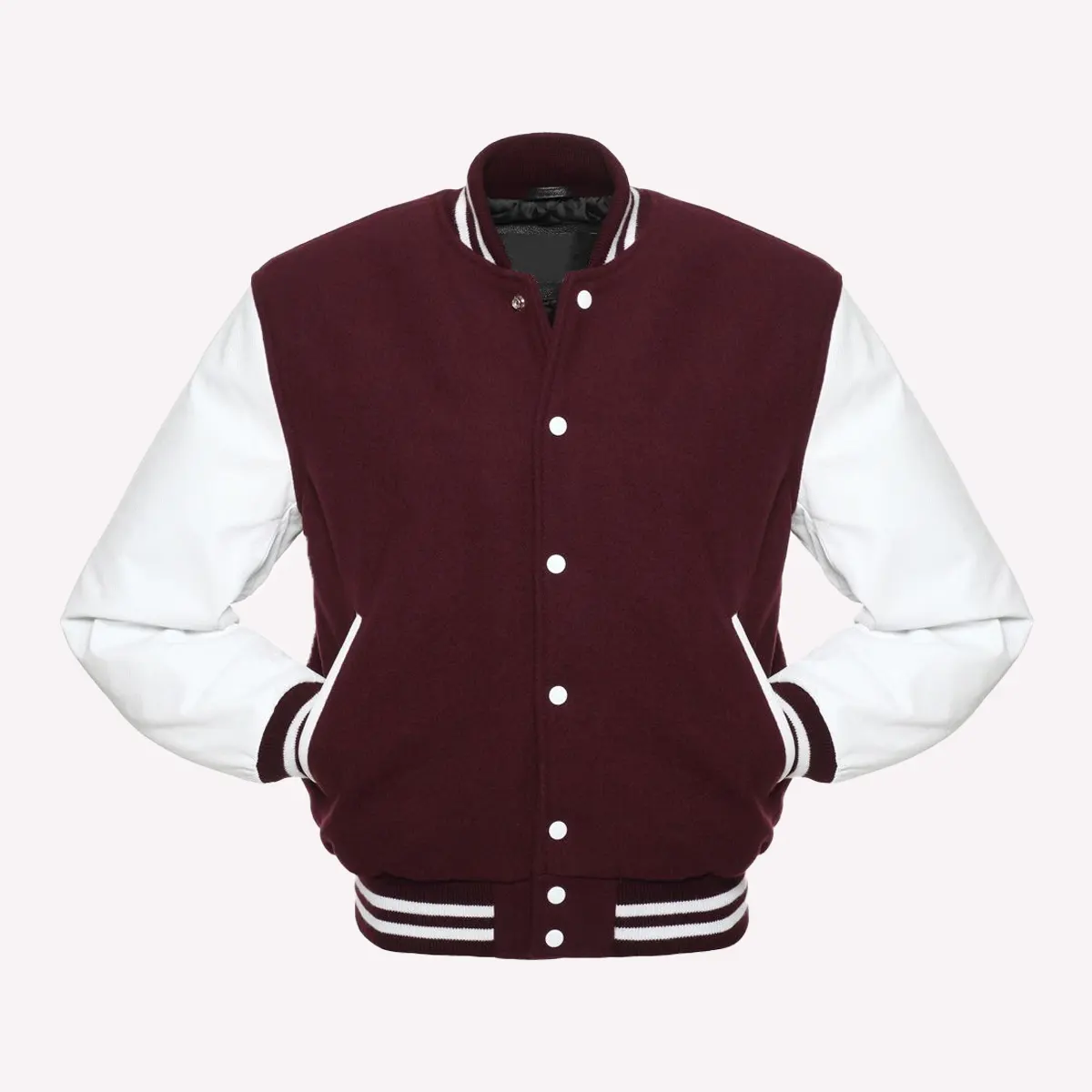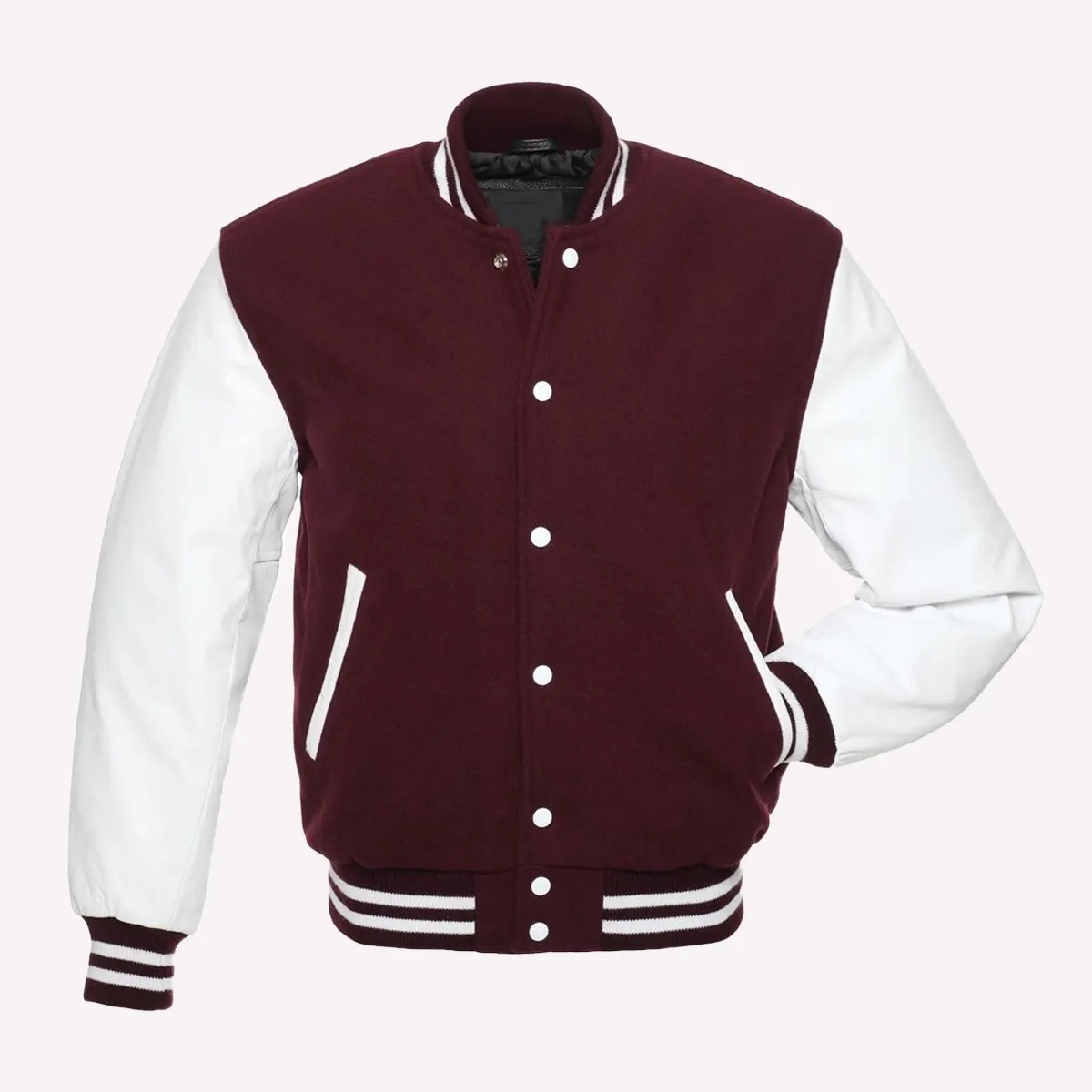 Mens Maroon Wool Body & White Leather Sleeves Varsity Jacket