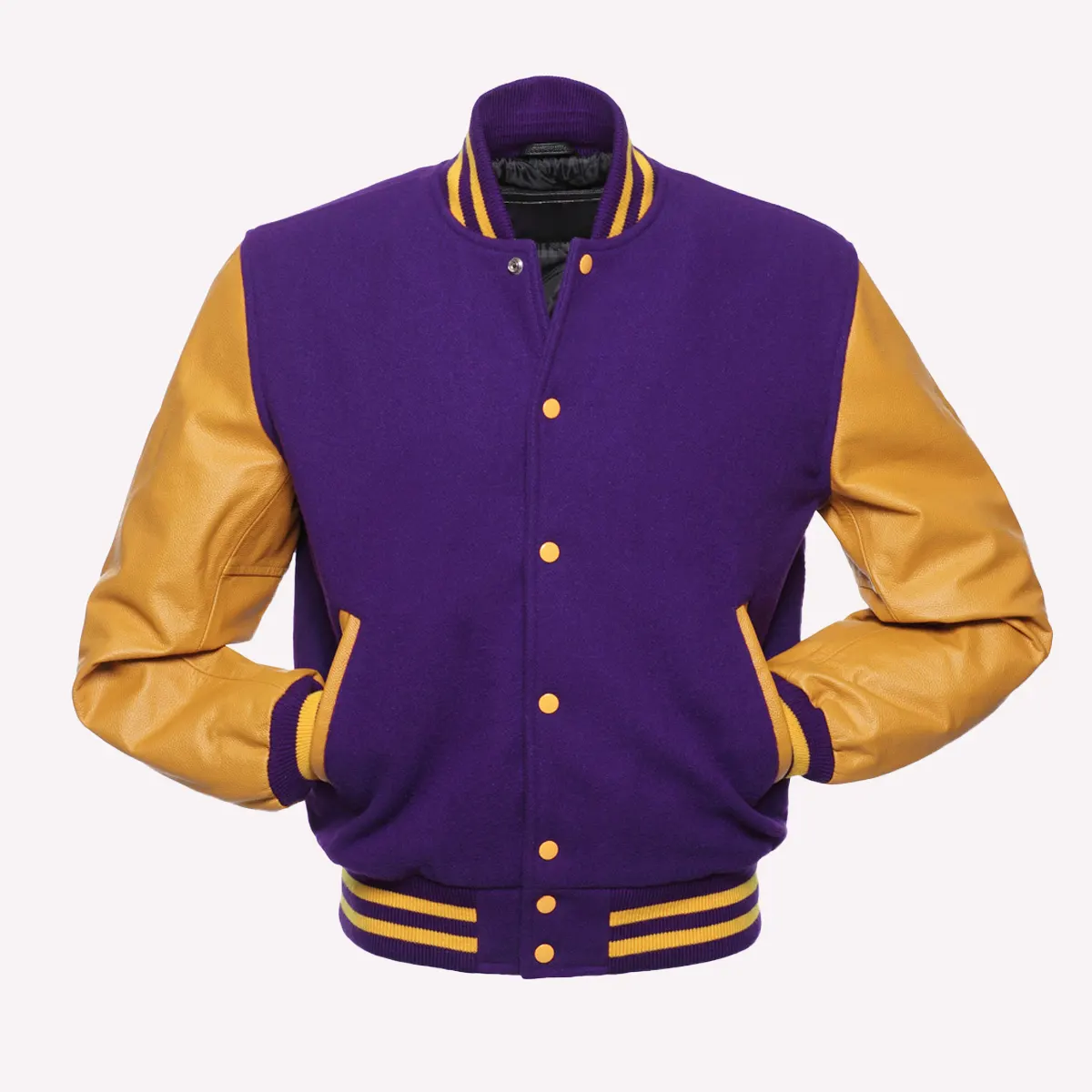 Purple Wool Body & Bright Gold Leather Sleeves Letterman Varsity Jacket