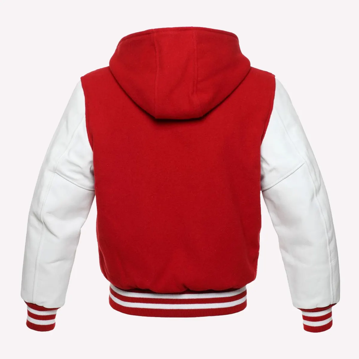 Red Wool Body & Bright White Sleeves Hoodie Letterman Varsity Jacket