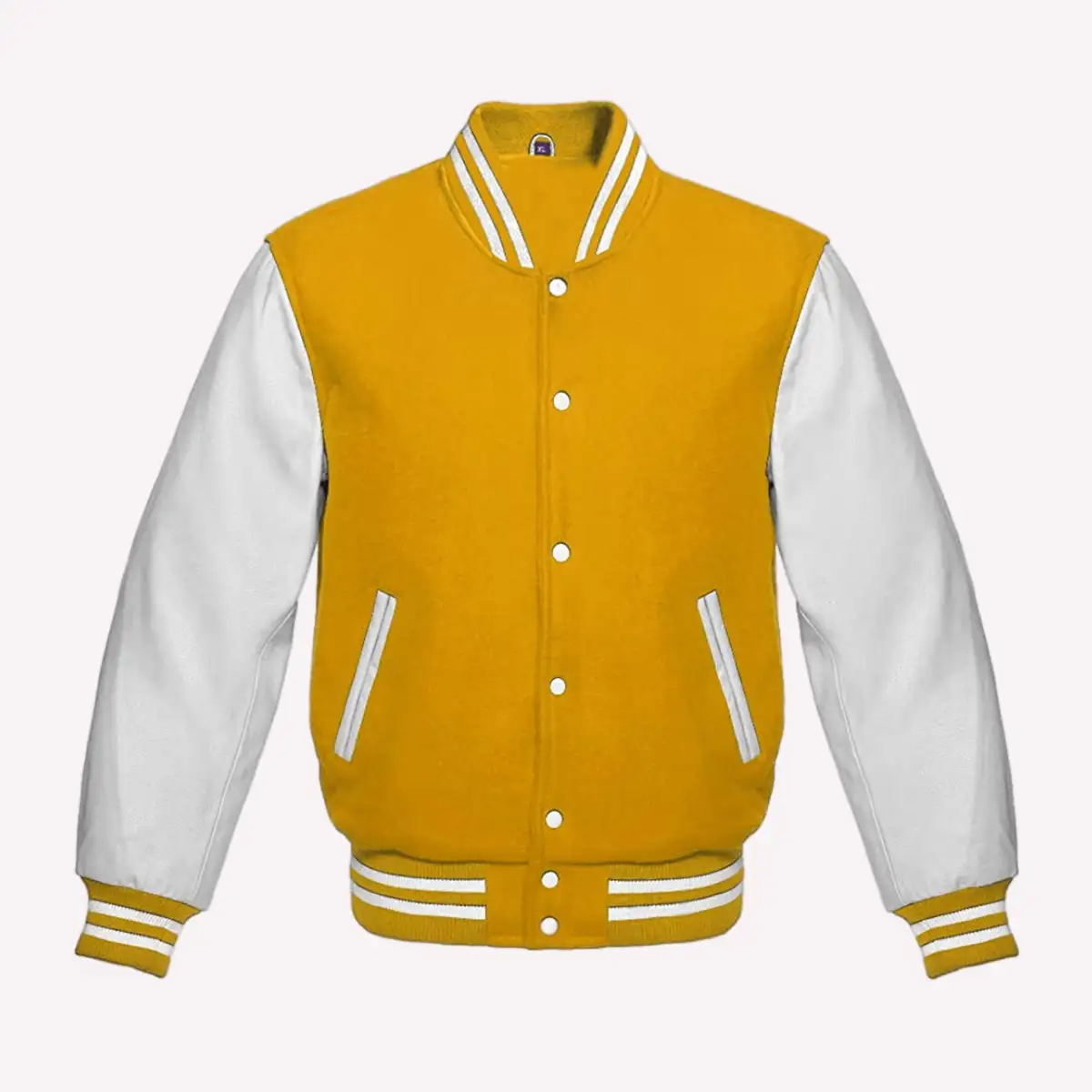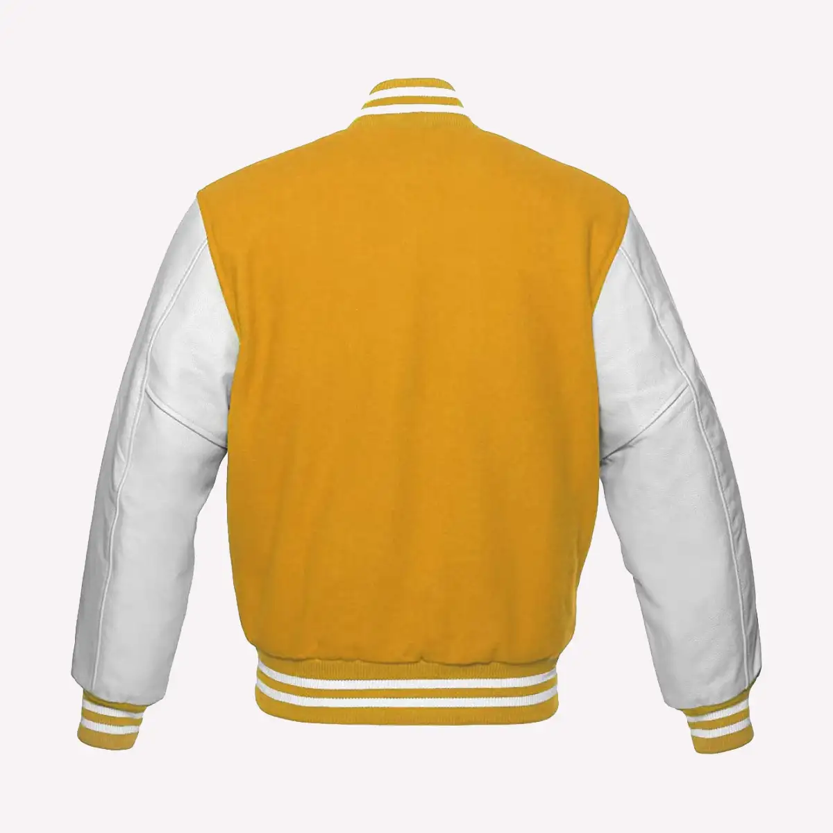 Yellow Wool Body & White Leather Sleeves Letterman Varsity Jacket