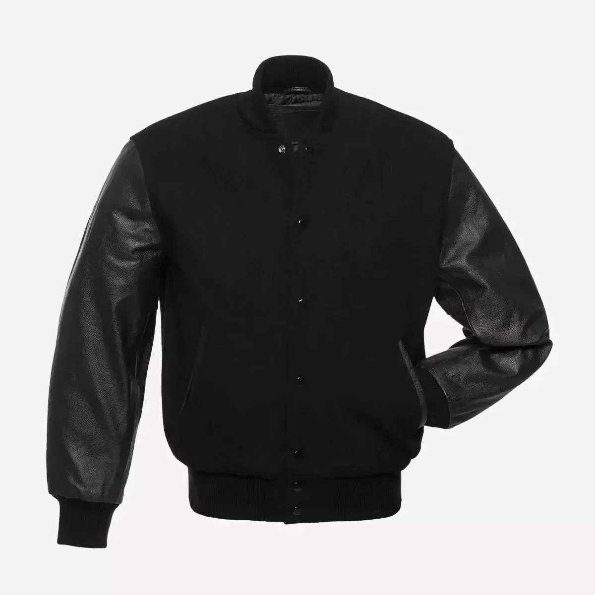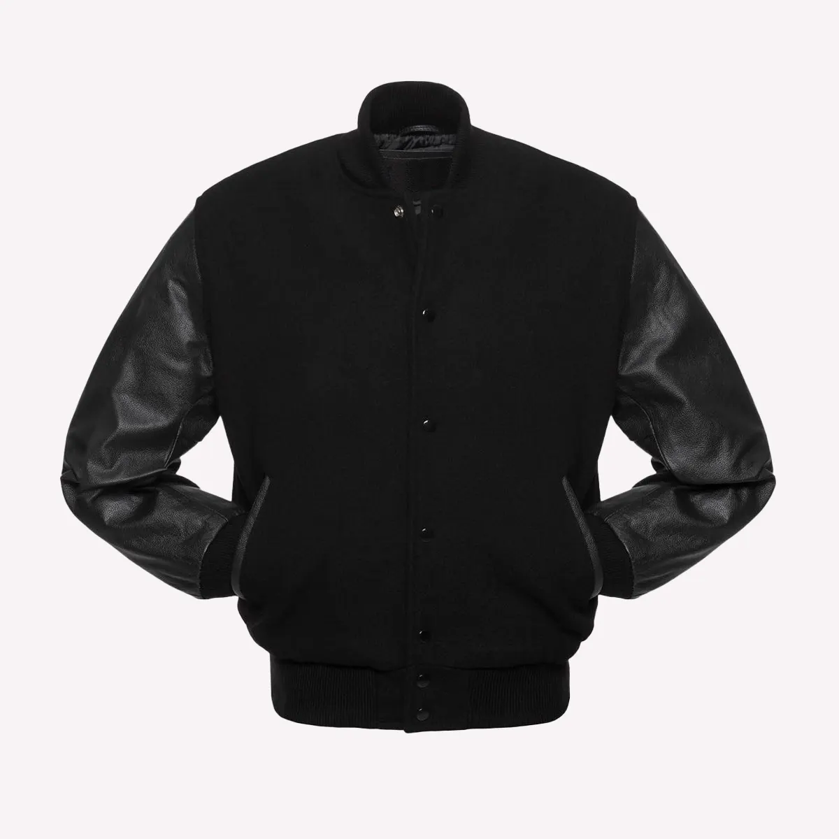 Black Wool Body & Black Leather Sleeves Varsity Letterman Jacket
