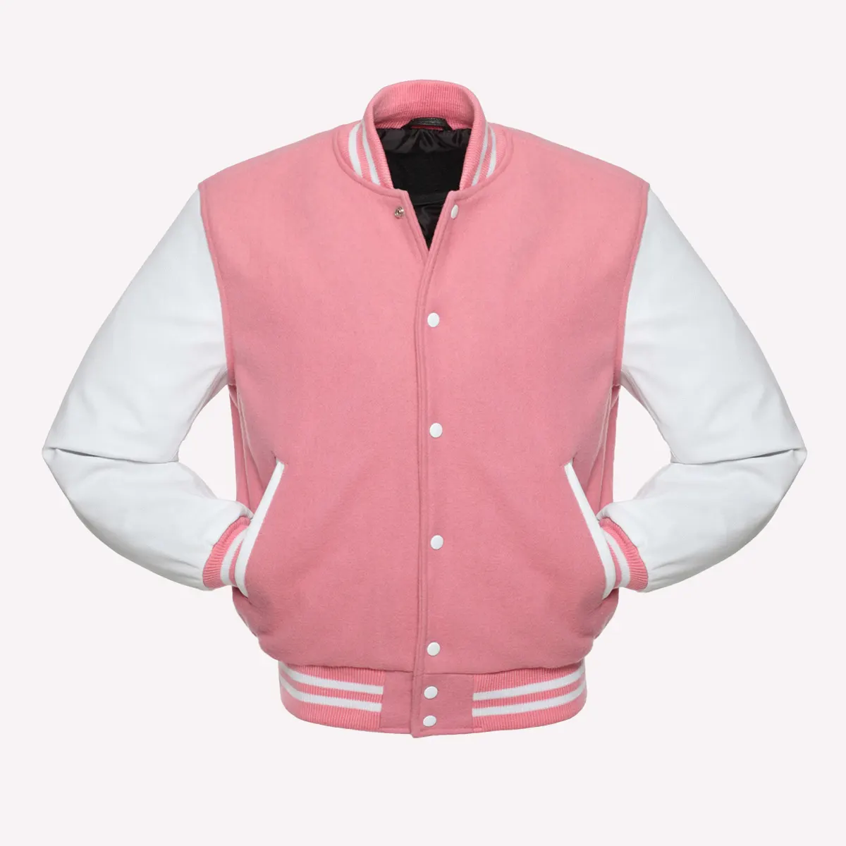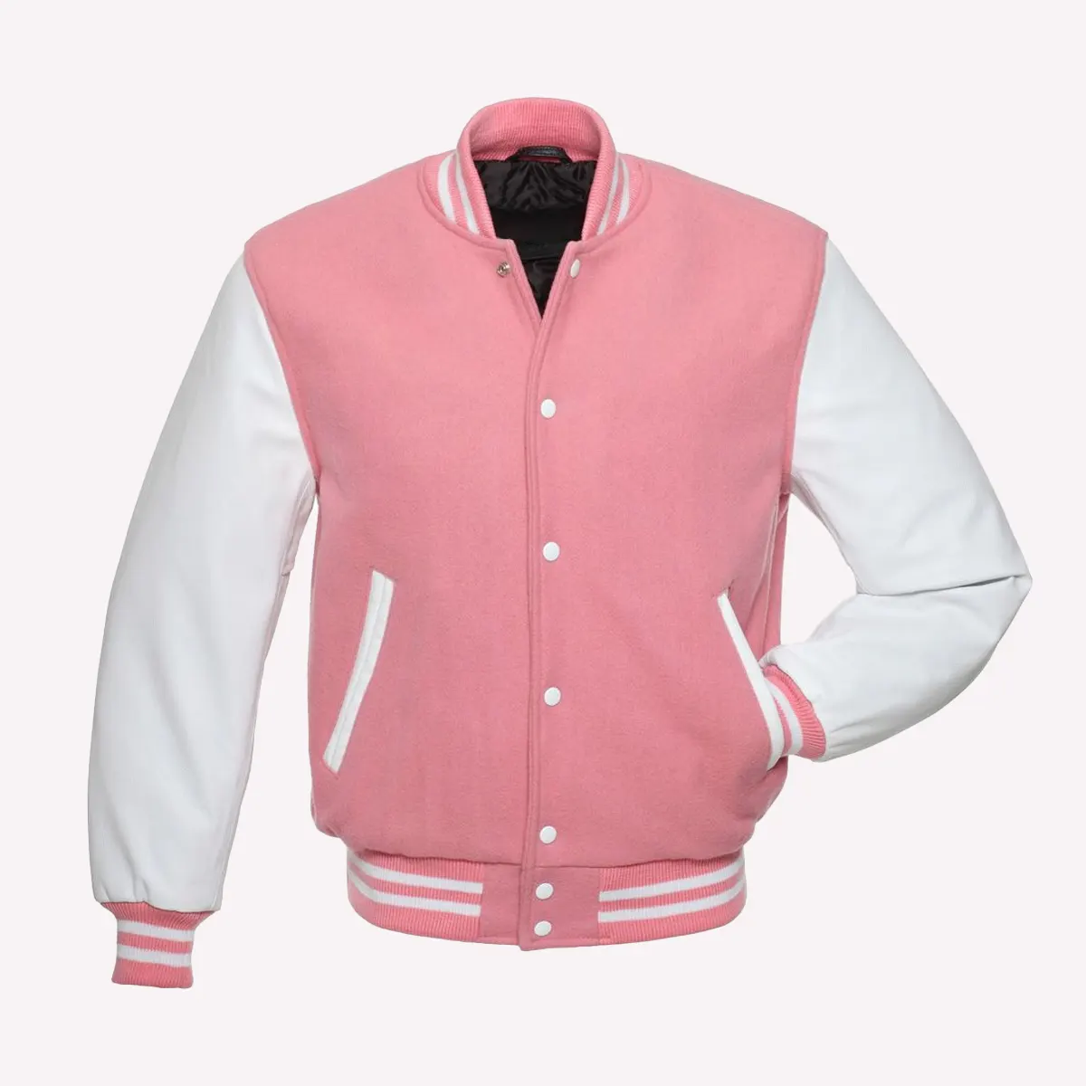Pink Wool Body & Bright White Leather Sleeves Letterman Varsity Jacket