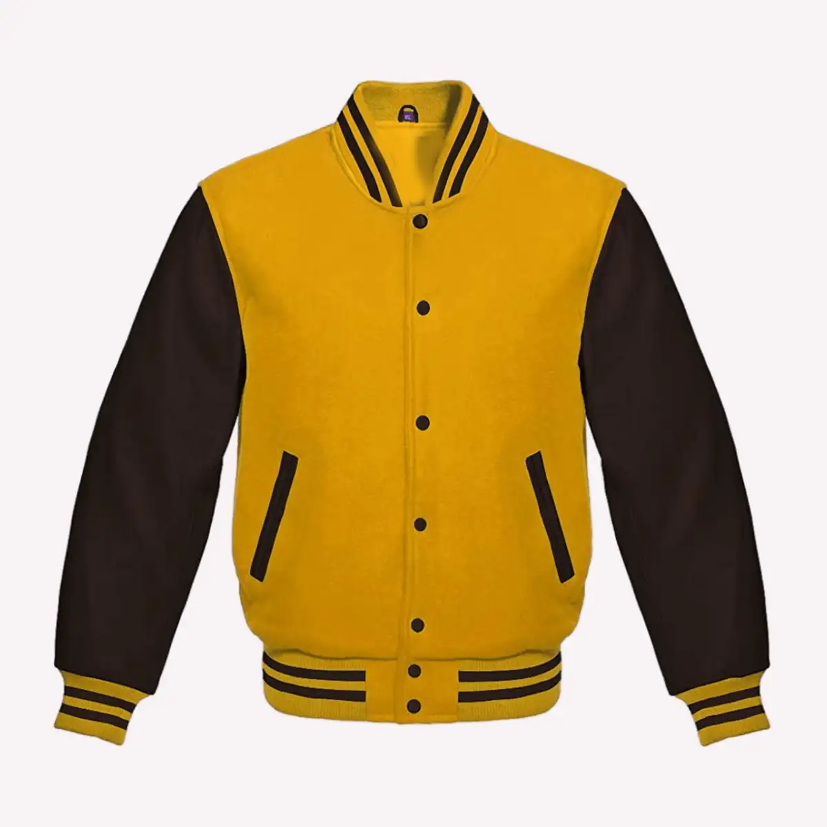 Yellow Wool Body & Black Leather Sleeves Letterman Varsity Jacket